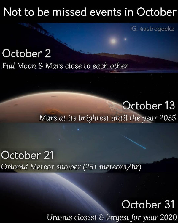 I know this isn’t in the infographic, but they’re wrong. On October 22nd, the crescent moon will be right next to Jupiter and Saturn. (See notes, above, about Jupiter & Saturn, and about Mars & the Moon.) You might look up, as I mentioned before, and say, “So what?” Just take a few minutes to look at them, anyway. The more you start to observe God’s glorious works in the heavens, the more you’ll start to be amazed at the loveliness of a sight such as this. So, even if you don’t appreciate it yet, take a minute to see it anyway, because you’re seeing something really special that people don’t get to see very often.