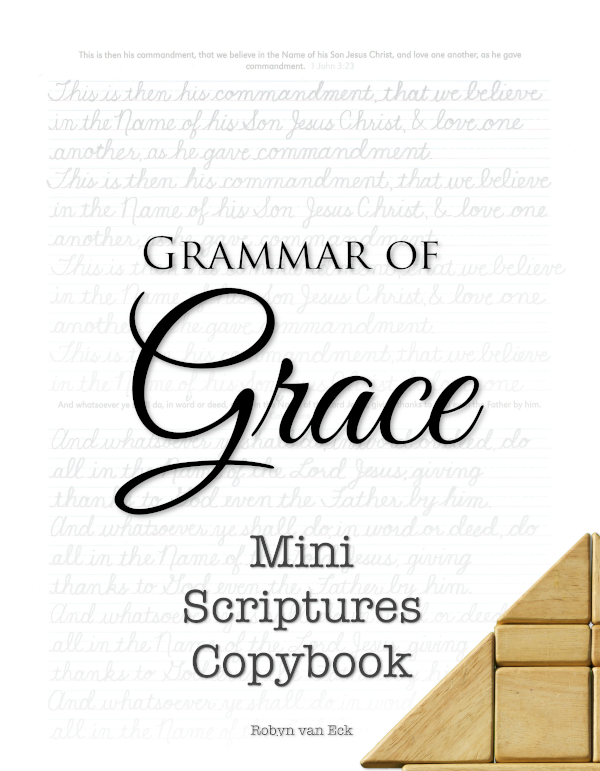 The riches of the wisdom of the Holy Scriptures are incomparable.  While there are lots of sources for copywork material, the best is God’s Word itself, living and active and powerful to save our children’s souls!  Hence, the Grammar of Grace Copybooks.